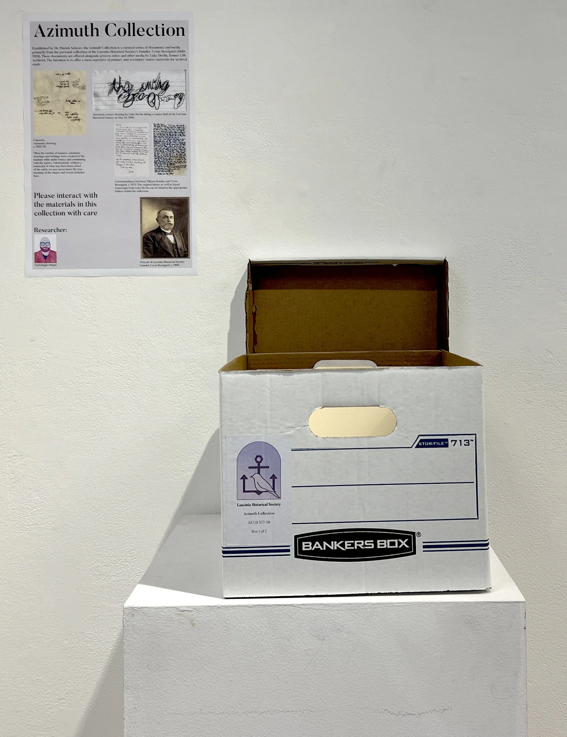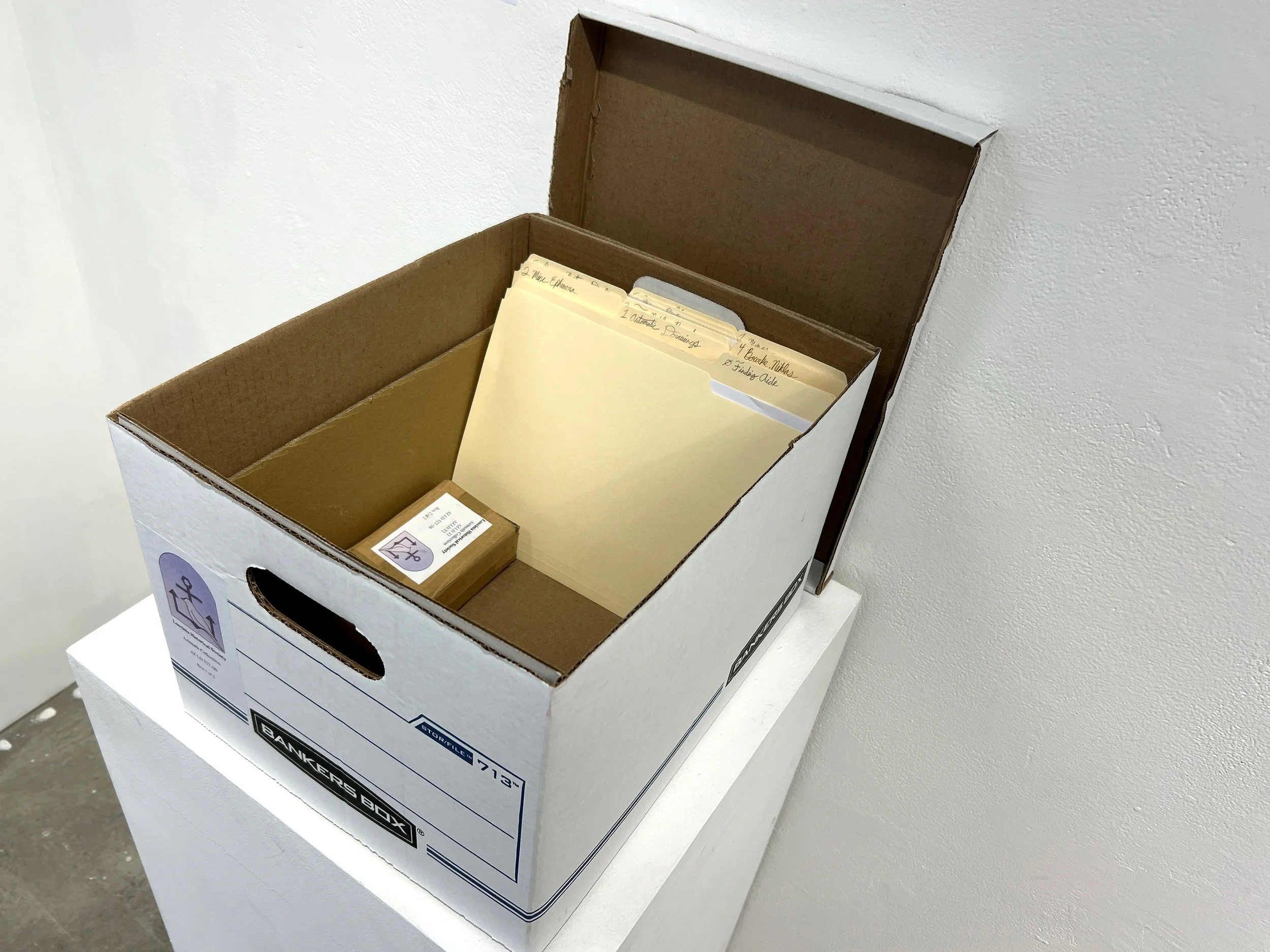 The Pink Acolyte Union (PAU) is an artist collective based in Cincinnati that has documented activities ranging as far back as 1925. It is the primary source of the Luscinia Historical Society’s collection — many of the objects are either artworks created by its members or papers from their estates. It is unclear the motives or intentions of the PAU, but they seem to be at the very least cordial towards the Luscinia Historical Society. Their current leader is an anonymous artist who goes by the mononym Endeeyoh. This collaborative component of the project allows myself and others to situate themselves in historic moments through the creation of alter egos, their stories, and objects they create.